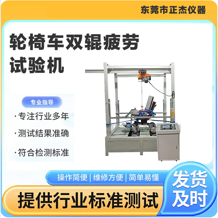 通过双辊试验机模拟轮椅车实际行驶工况(含平坦路面、轻微颠簸路面等),对轮椅车架、轮组、传动系统等核心部件施加反复循环载荷,评估产品在长期使用中的疲劳寿命、结构稳定性及耐用性,为产品质量控制、设计改进及标准认证提供科学依据。