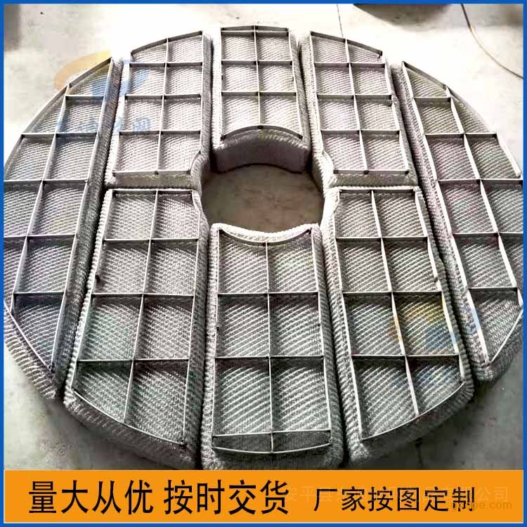 东迪DN4000-150脱硫丝网除沫器 破雾器是指在蒸发操作时,二次蒸汽中夹带大量的液体,虽然在分离室中进行了分离,但是为了防止损失有用的产品或污染冷凝液体,还需设法减少夹带的液沫,因此在蒸汽出口附近设置除沫装置。除沫器的形式很多,经常采用的形式可直接安装在蒸发器的顶部,不常采用的安装在蒸发器外部。