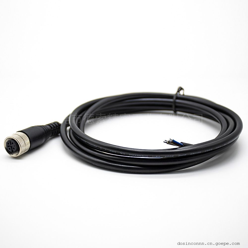 德索M12注塑线材A编码4芯母直式焊接2M单边线AWG22RHT-605-1872