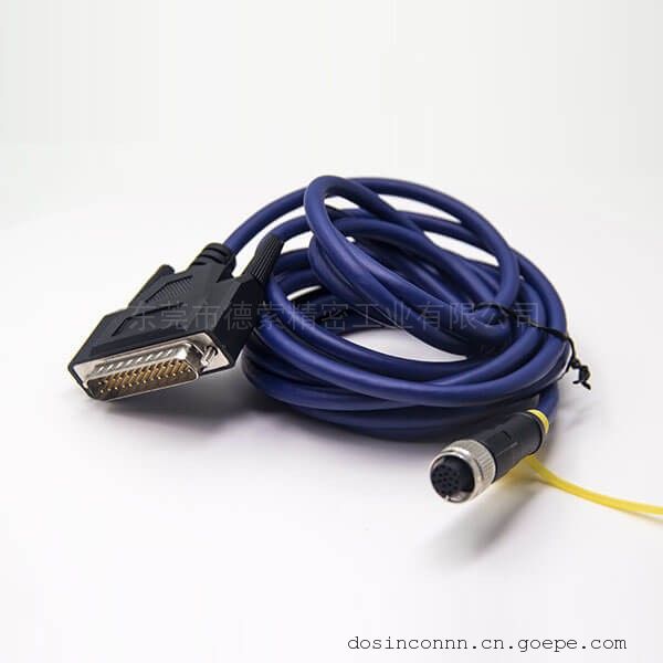 德索M12注塑线材17芯转25芯母转公直式焊接1M双边线M12D-subAWG26RHT-605-1939
