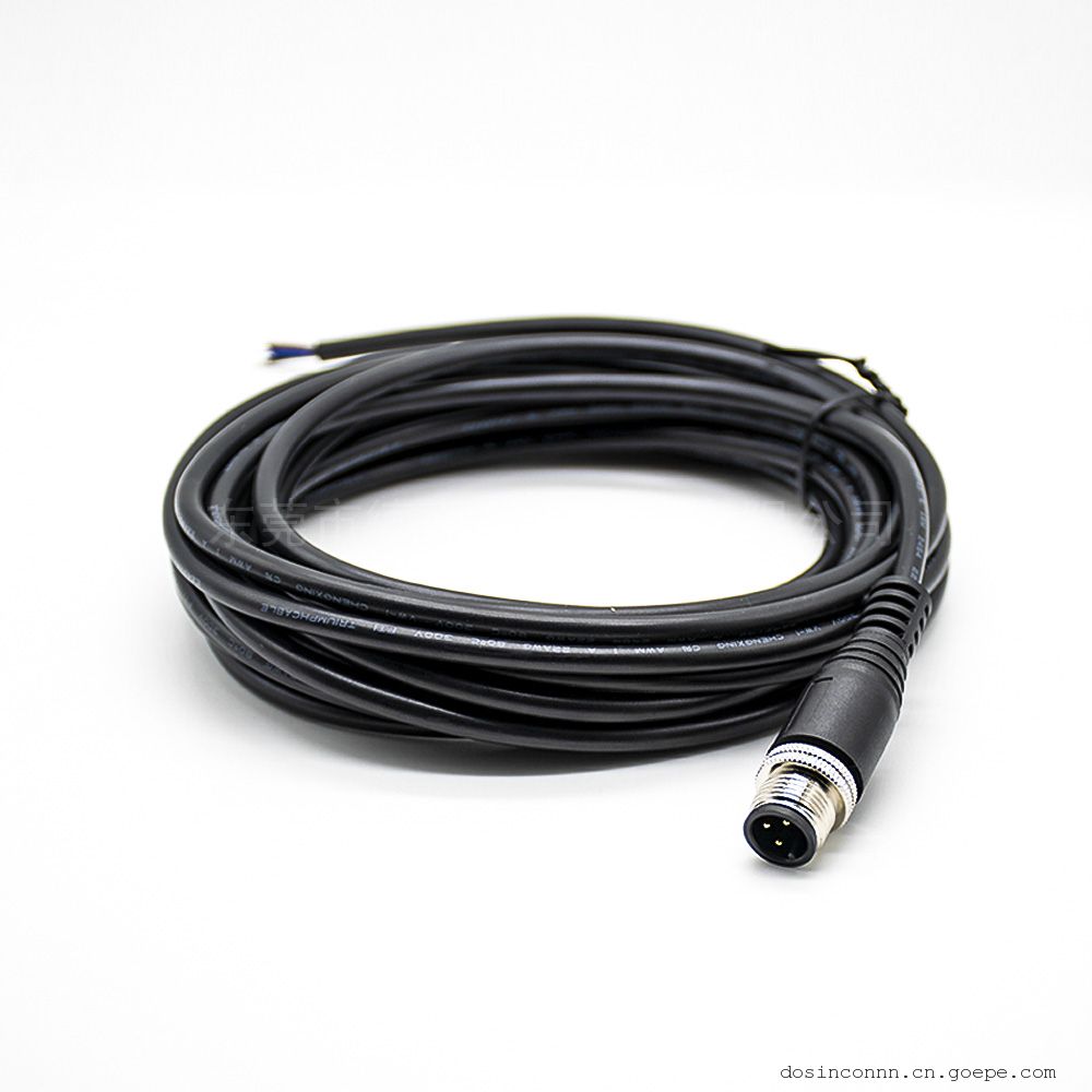德索M12注塑线材A编码3芯公直式焊接5M单边线AWG22RHT-605-1878