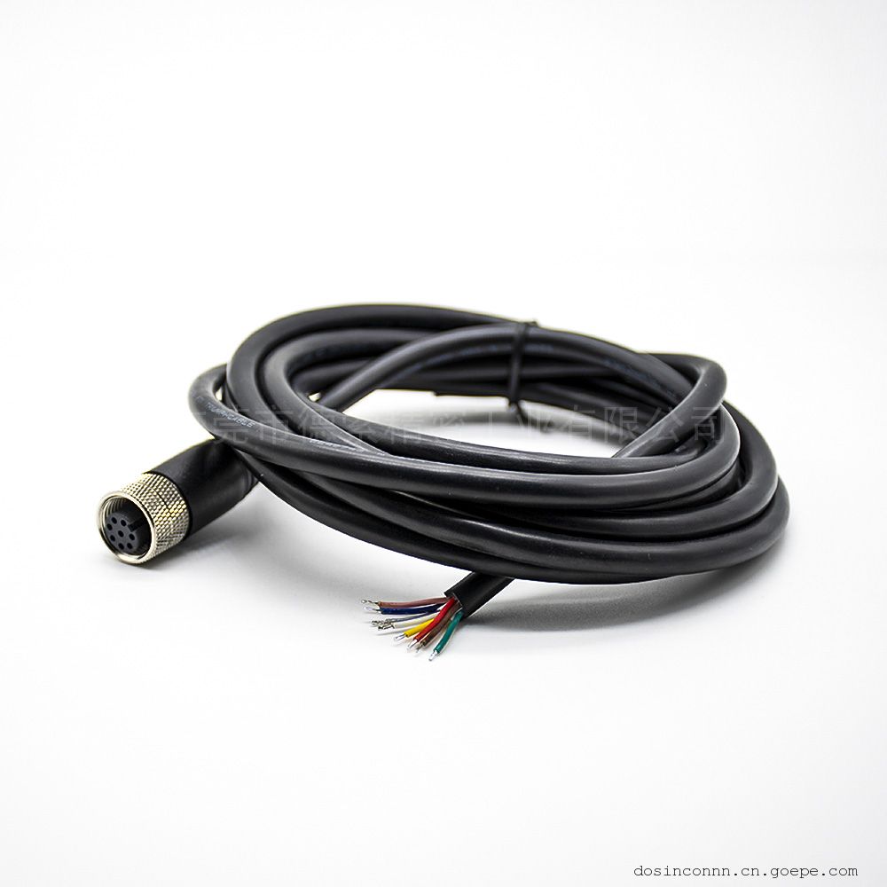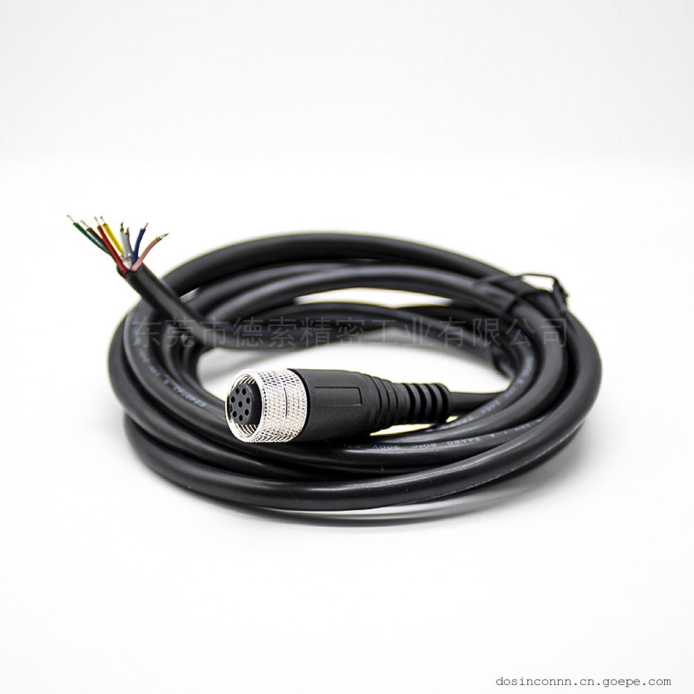 德索M12注塑线材A编码8芯母直式焊接2M单边线AWG24RHT-605-1881