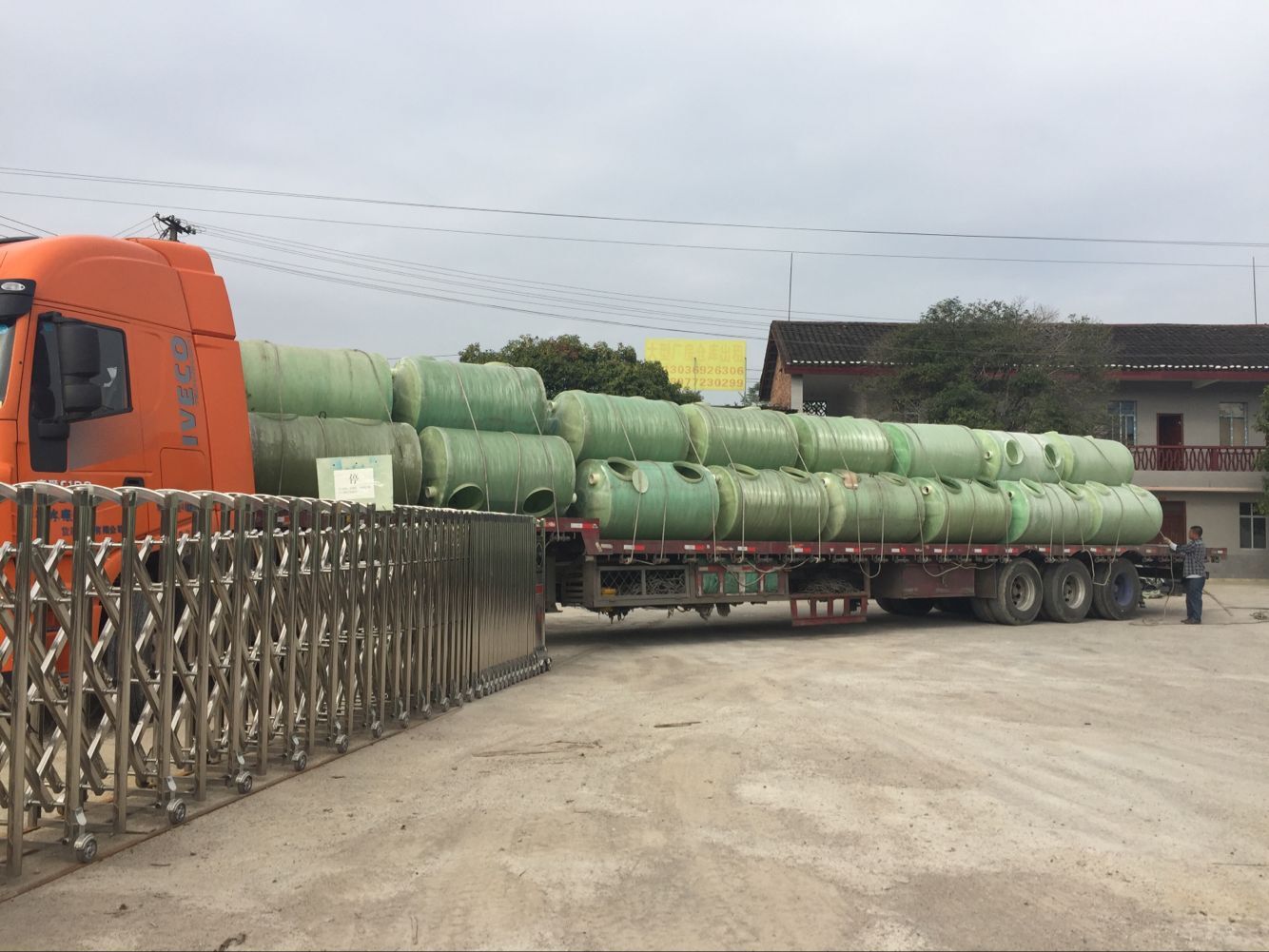 广西南宁HFRP-75玻璃钢化粪池。HFP-75玻璃钢化粪池使用高分子材料与高强度玻璃钢纤维复合制成的圆筒型整体化粪汇,与传统砖混化粪汇相比,具有严密性好,不渗漏、重量轻易于运输,抗压强度高、耐酸碱、使用寿命长、安装快捷等优点。池体上部设有进出水和清掏孔,池内用隔仓板分成一级厌氧沉淀池、二级厌氧生化沉淀池和澄清池三部分沉淀池内填充有高效生物厌氧处理填料和挂膜填料。