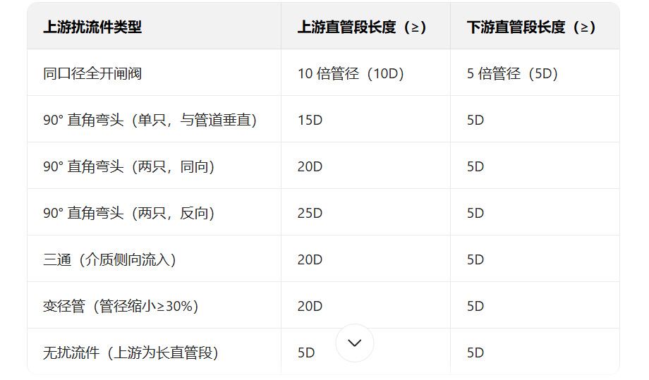 - 低流速工况(实际流速<1m/s):需额外延长上游直管段 10%~20%,或加装整流器,确保流体流态稳定。