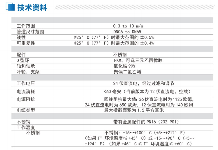 当通过管道时,流体会冲击涡轮机叶片,对涡轮机产生驱动力 矩,而该驱动力矩则通过克服摩擦力矩和流体阻力矩使涡轮机 发生旋转。在一定的流量范围内,就一定的流体介质粘度而言, 涡轮机的旋转角速度与流体速度成正比。因此,可以从涡轮机 的旋转角速度得出流体速度,从而可以计算通过管道的流体流量。涡轮机的旋转速度由安装在机壳外部的传感器线圈进行检测。