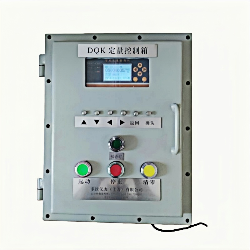 - 防爆型 DQK 定量控制箱:内置防爆型智能定量控制仪、定制防爆内部控制线路及组件,外置防爆型启停、清零按键与防爆状态指示灯,标准尺寸 400300200mm(高宽厚),防爆等级按需定制,供电可选防爆 DC24V 或防爆 AC220V,可直接为防爆传感器、防爆断流设备供电;支持 4-20mA、RS485 防爆信号输出,可对接其他防爆控制设备,亦可加接防爆打印功能。