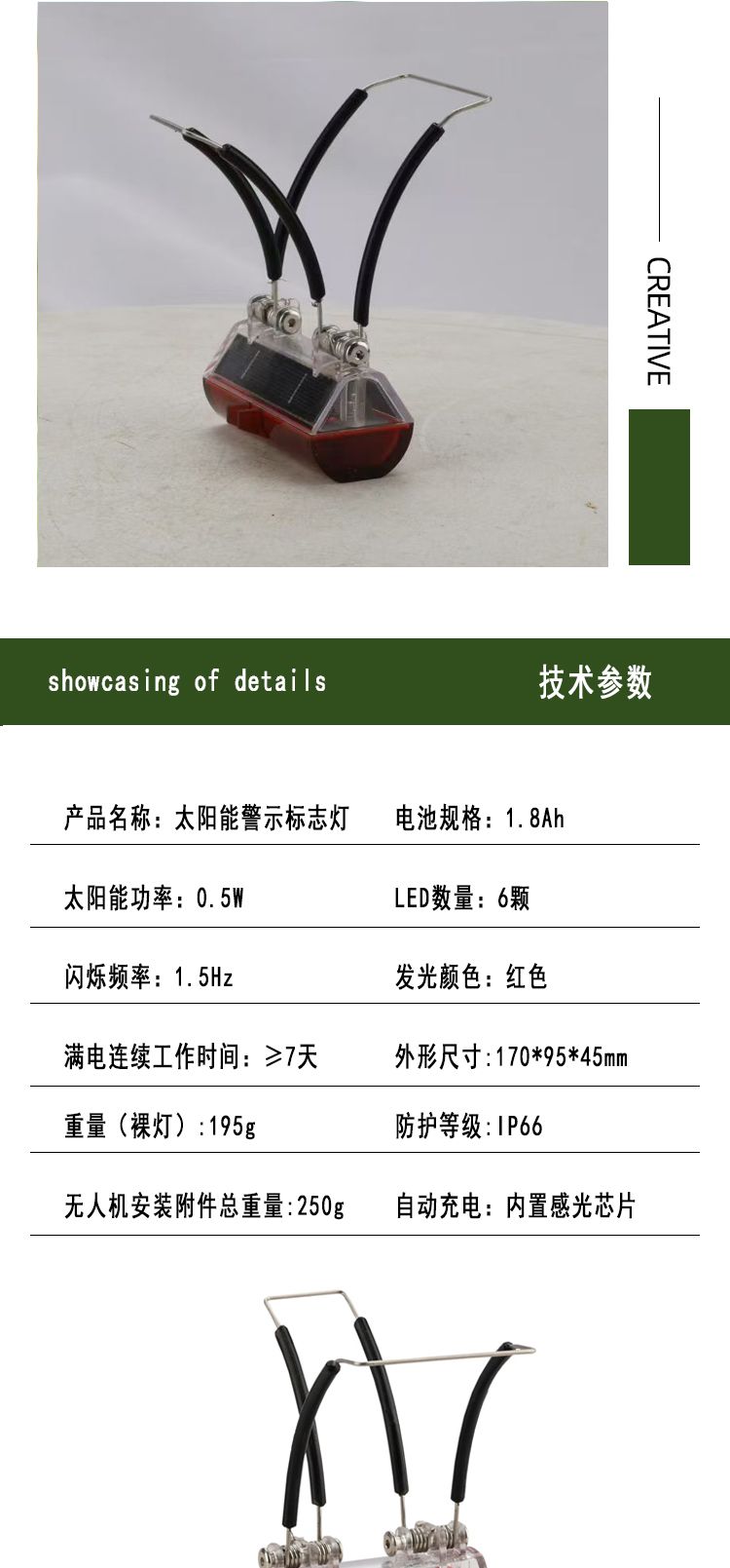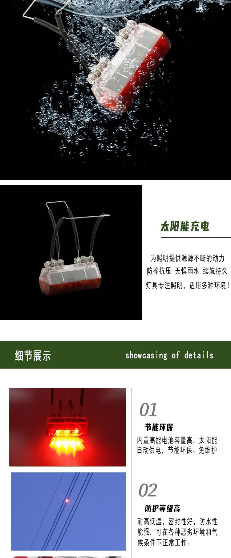 鼎轩照明LED红光频闪IP66高压线路驱鸟太阳能爆闪灯可无人机安装EF1037A