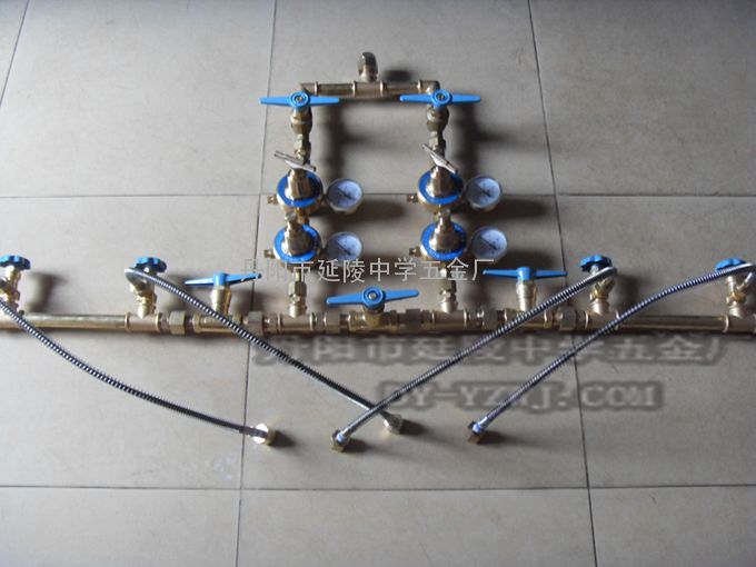 气体汇流排、氧气汇流排是一种集中充气或供气的装置,它是将多只钢瓶气体通过阀门、导管联接到汇流总管,以便同时对这些钢瓶充气;或者经减压、稳压后由管道输送到使用场所的专用设备,以保证用气器具的气源压力稳定可调,并达到不间断供气的目的。气体汇流排可以适用的介质有氦气、氧气、氮气、空气等气体,主要用于工矿企业、医疗机构、科研院校等用气量大的单位。本产品结构合理,工艺先进,操作简便,是保障安全、实现文明生产的重要装置。本产品根据气瓶多少和配置式区分,具有多种结构形式,有1×5瓶组、2×4瓶组、3×2瓶组、5×2瓶组、10×2瓶组等可供选择,也可根据用户需要和环境要求作特殊配置。 本产品的气体压力适配于所配置的气瓶公称压力。