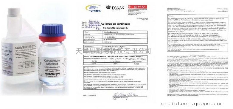 ? HAMILTON电导率标准液符合DMF的可追溯性的校验认证标准。