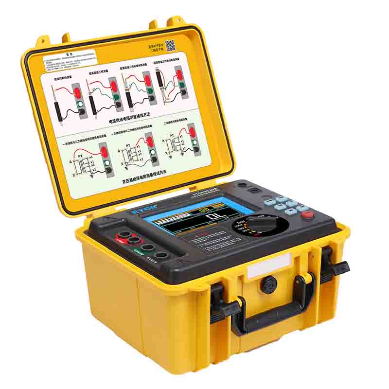 ETCR3520B高压绝缘电阻测试仪又称高压兆欧表、高压绝缘电阻表,仪表拥有完善的各种绝缘电阻指标测试功能、自设测试电压功能、良好的抗干扰能力,在变电站等有强感应电环境下、以及在分布电容较大的使用场景下具有明显优势。仪表采用真彩触摸屏,所有测试数据及电池电量同屏显示一目了然,旋钮开关和按键组合使得操作非常简单。用户无需费力记忆操作方法,点击屏幕的“HELP”即可弹出操作方法,有效指引用户操作仪表。产品适用于大容量、高压、强感应电环境下电气设备、输电线路等大型设备的绝缘电阻测试。是电力、电信、气象、机房、油田、机电安装和维修以及工矿企业供电部门常用而必不可少的仪表。