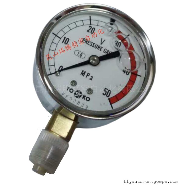 NSPA-G1/4-60X50MPa-V东洋计器兴业TOAKO直立式径向充甘油耐震压力表50MPa刻度塗色