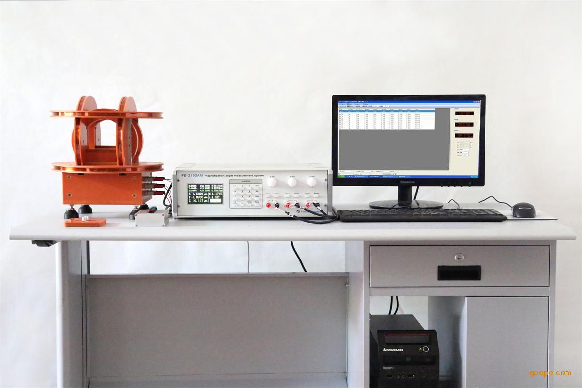 FE-2100AM 永磁材料品质测试系统由三维亥姆霍兹线圈连接独立的三分量磁通计,构成硬件测试部分,通过对三个分量的测试数据进行微机换算,构成一套完整的永磁材料品质测试系统。