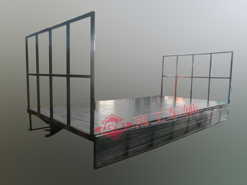 5.车四周增加一组护栏,前后为固定式高1.55米,两边为翻转式高0.5米;