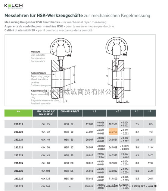 德国凯狮 HSK160刀柄锥度测量仪KELCH