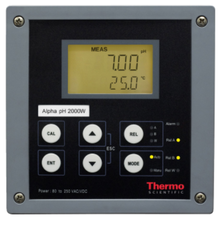 Alpha 2000W 系列广泛应用于多种过程控制场合,安装方式包括壁挂式、管道和面板式安装,防护等级 NEMA 4X。此控制器还可实现电极的自清洗,两路独立的用于测量参数和温度的4-20 mA 输出,以及保持功能(HOLD)使得控制功能与外部设备(如浮子、流量开关)结合,实现 安全控制。