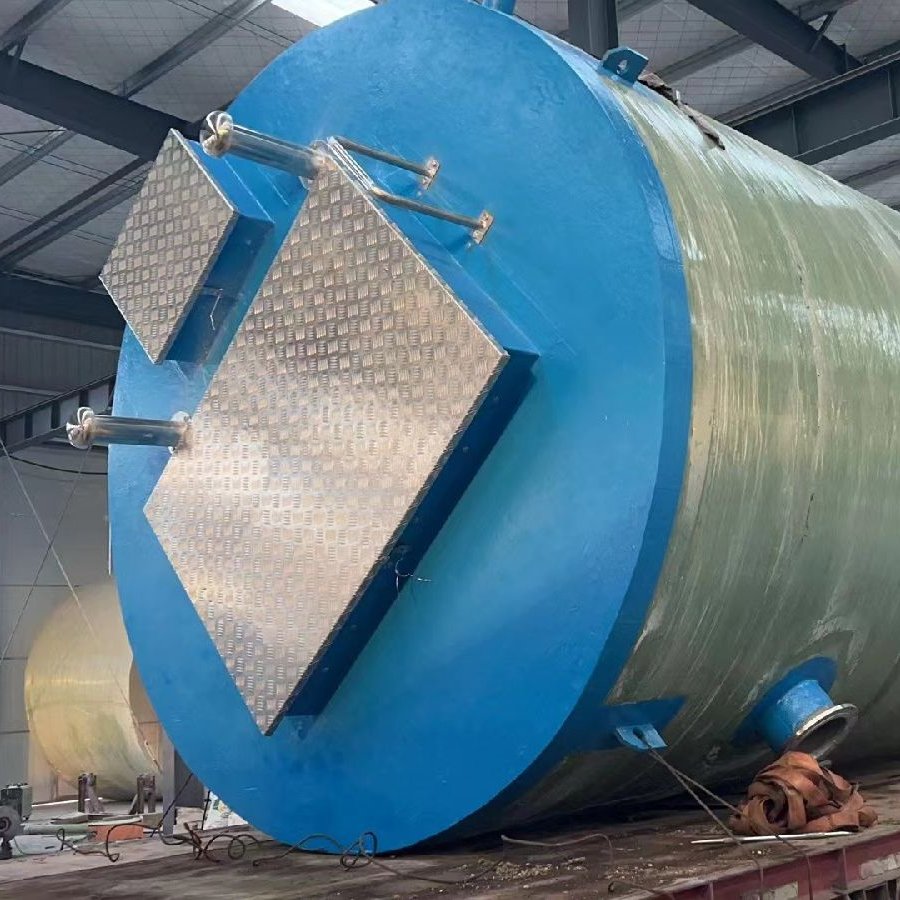 预制泵站筒体结构由纤维缠绕玻璃钢(GRP)制成,电脑控制连续缠绕成型,确保厚度均匀并达到设计要求,质量稳定优良。