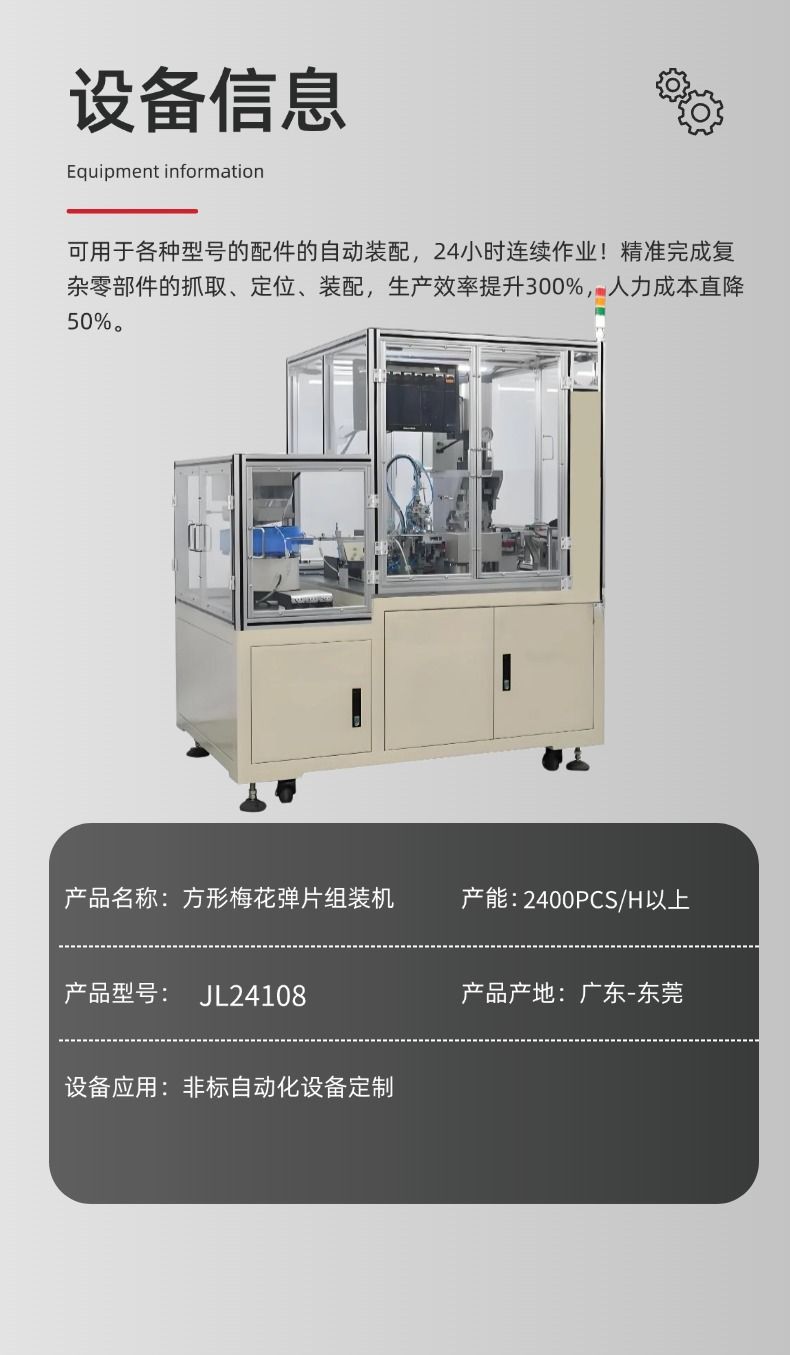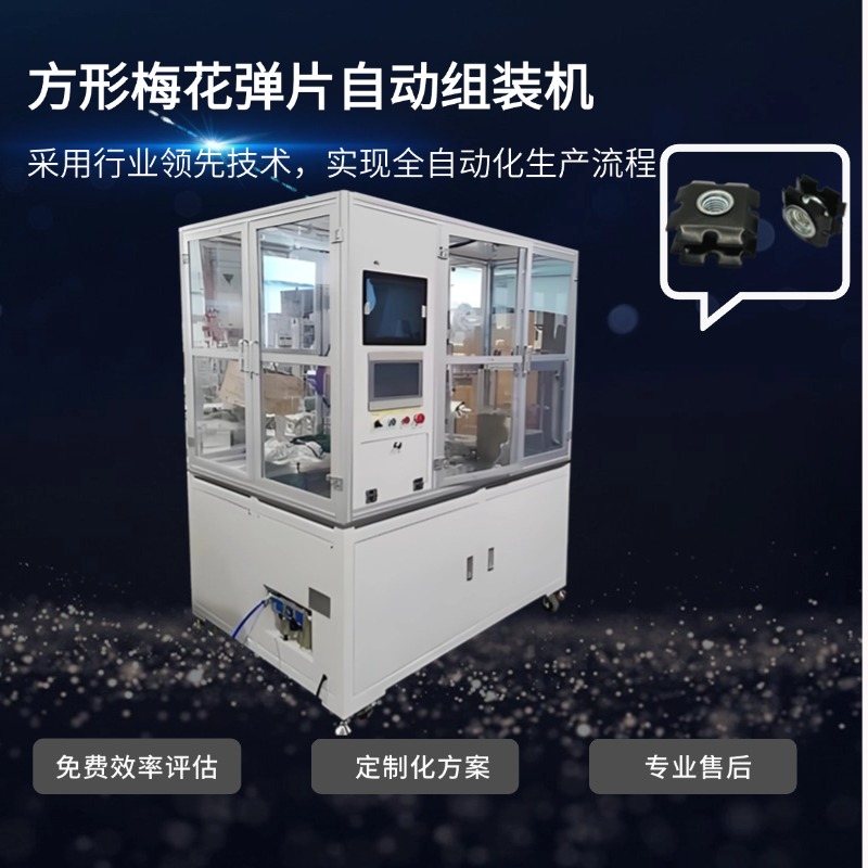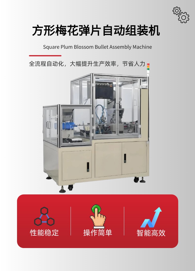 方形梅花弹片自动组装机是一种专用于精密电子元件(如方形梅花弹片)高效组装的自动化设备,广泛应用于连接器、开关、传感器等产品的生产。以下是该设备的综合简介: