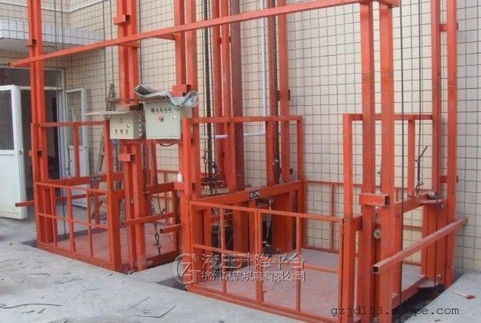 们都是采用无机房形式的,无传统货梯井道苛刻要求,一般单独造一个货梯井
