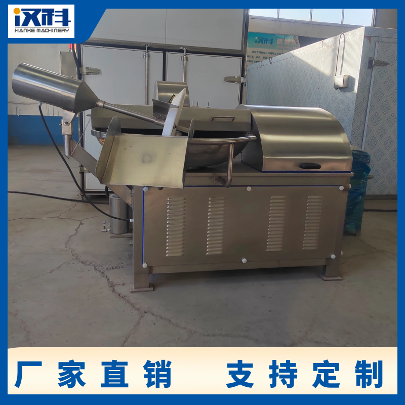 斩拌机刀速、锅速、斩刀与转锅的间隙达到完美合理,使斩切产品细度好、升温小、斩拌时间短,特别是由于乳化处理,使大豆蛋白类产品的细密度与弹性增强,提高了豆制品乳化效果、弹性及细腻度。采用变频技术,刀速调整范围大,刀速、锅速、斩刀与斩锅的间隙、斩刀材质和刀的硬度设计较为合理。