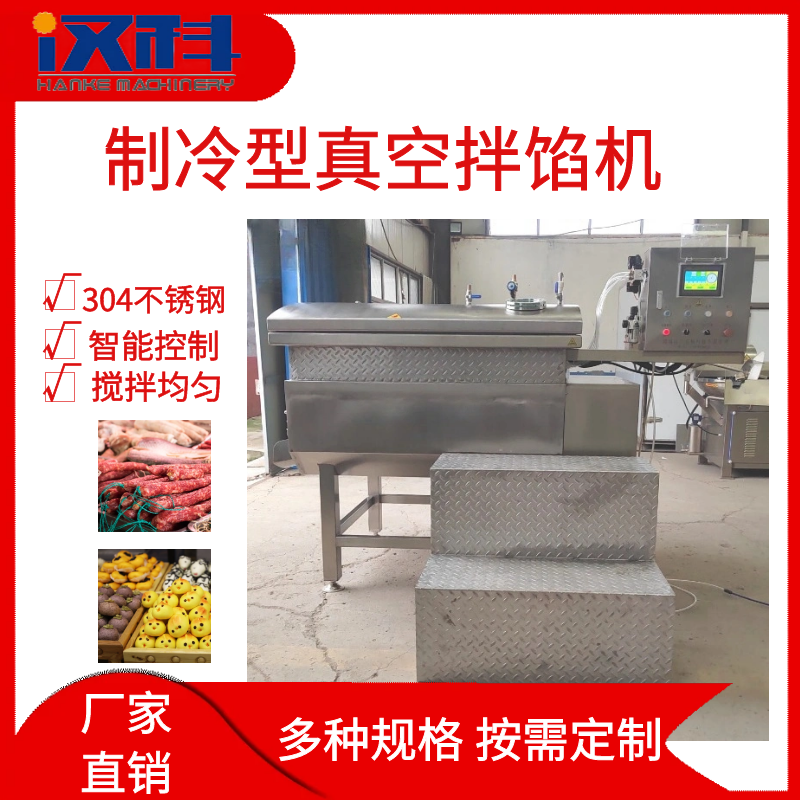 整机采用304不锈钢材料制作,易于清洗,密封效果好,采用侧面开启出料方式,简单方便。经过真空拌馅机搅拌的产品粘度增加,更加富有弹性,独特的扇形搅拌器,在搅拌的同时又对馅料起嫩化作用,具有工作效率高的优点,拌馅机可采取可逆运转,可满足不同搅拌工艺的要求。单绞龙拌馅机适用于搅拌较稀或粘度较小的馅料;双绞龙型拌馅机适合于搅拌较稠或粘度较大的馅料。