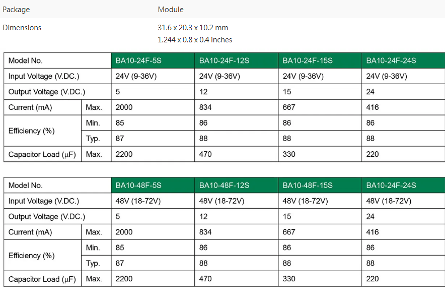 系列直流电源模块BA10-24F-5S BA10-24F-12S BA10-24F-24S BA10-24F-15S