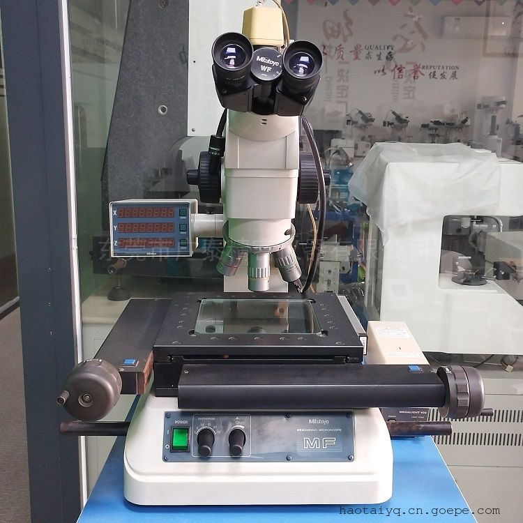 二手日本工具显微镜MF 176-542壹台,外观八九成新的,有两个目镜,四个物镜,镜头放大X倍,影像图像清晰,质量好,操作简单易学,同行可以谈价格,便宜出货,东莞市长安镇涌头宏丰路36号,东莞广泰精密仪器公司欢迎来试机看货。