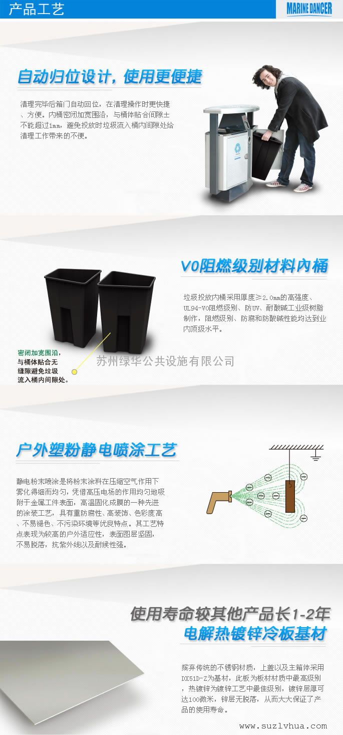 绿华公共设施有限公司于2008年进入环保领域,一直致力于生产优质的环卫垃圾桶,果皮箱等户外公共设施,多年的经验积累,使我们拥有技术精湛的产品设计,生产制造队伍。主要生产吴江垃圾桶、吴江果皮箱、吴江分类垃圾桶、吴江塑料垃圾桶。广泛用于市政、街道、社、机场、商场、学校、工厂、医院等公共场所。