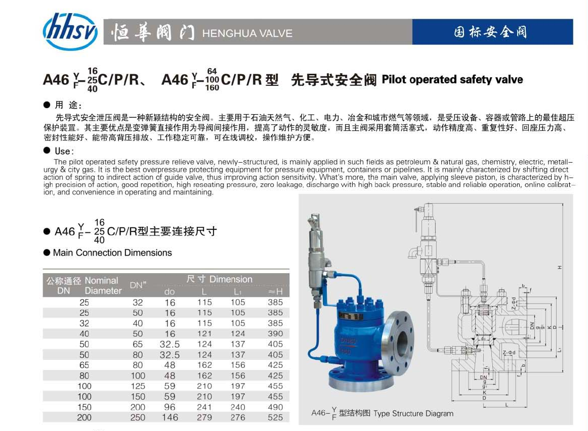 A46Y先导式安全泄压阀是一种新颖结构的安全阀。主要用于石油天然气、化工、电力、冶金和城市燃气等领域,是受压设备、容器或管路上的******超压保护装置。其主要优点是变弹簧直接作用为导阀间接作用,提高了动作的灵敏度,而且主阀采用套筒活塞式,动作精度高、重复性好、回座压力高、密封性能好、能带高背压排放、工作稳定可靠,可在线调校,操作维护方便。
