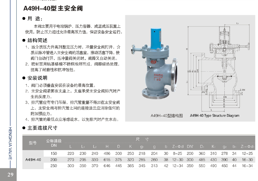 恒华安全阀主安全阀A49H
