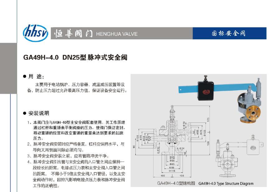 GA49H脉冲安全阀主要用于电站锅炉、压力容器、减温减压装置等设备,防止压力超过允许*高压力值,保证设备安全运行。