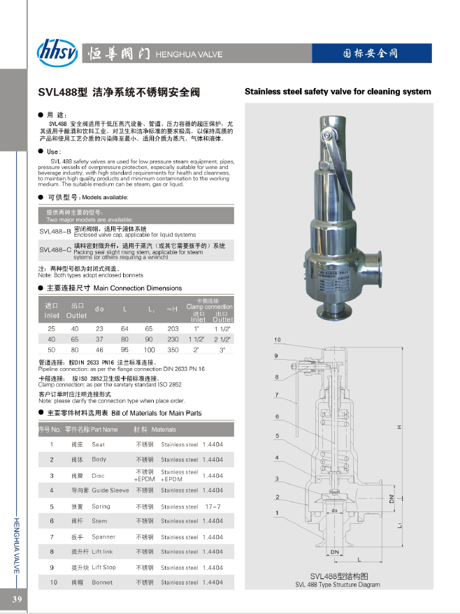 恒华安全阀洁净系统不锈钢安全阀SVL488