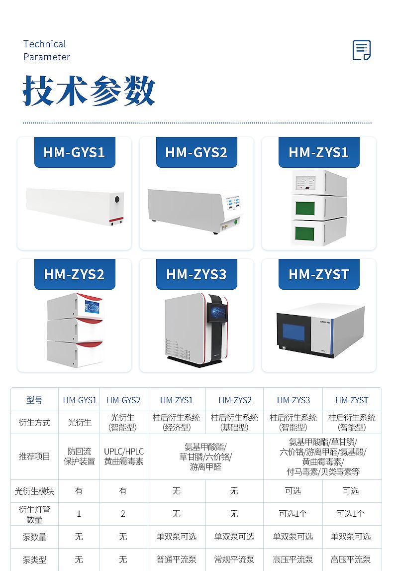 | 推荐项目 | HPLC做黄曲霉毒素 | UPLC/HPLC做黄曲霉毒素 | 氨基甲酸酯/草甘膦/六价铬/游离甲醛 | 同ZYS1 | 同ZYS1 + 氨基酸/黄曲霉毒素/付马毒素/贝类毒素等 | 同ZYS3 |