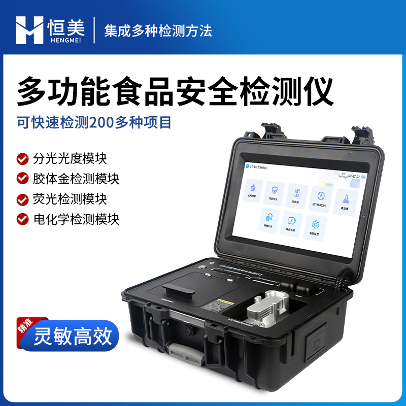 该设备多功能一体,广泛应用于市场监管局、检测中心、卫生监督部门、农业部门、院校及各单位食堂、食品肉产品深加工企业、商超市场、司法部门、餐饮机构、养殖场、屠宰场、检验检疫部门等单位使用。