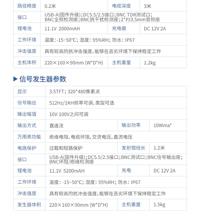 14、接口:USB-A(固件升级);DC5.5/2.5接口;BNCTDR测试口;BNC全频检测座;BNC抗干扰检测座;2*PJ3.5mm音频座