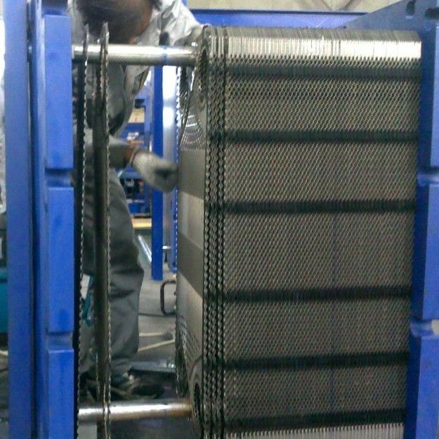 9、仔细检查密封垫片与换热板片表面(沟槽内),严禁积存固体颗粒,如沙子、铁渣等。