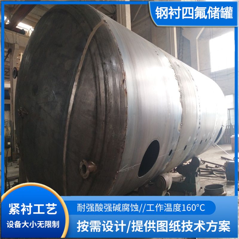 钢衬聚四氟乙烯搅拌罐 聚四氟乙烯衬里搅拌槽 是化工行业不可缺少的防腐蚀设备,可用于生产加工、贮存产品。四氟内衬一般厚度有:3mm、4mm、5mm,国产四氟储罐多层3mm内衬板,具体厚度根据使用介质、温度来决定。四氟板衬里有一定的收缩性,能衬里一些复杂的异形管件。内衬四氟储罐 四氟防腐储罐 目前均以碳钢、不锈钢为基体,再内衬氟化物,取得了一定的防腐效果,避免了设备、容器的腐蚀。