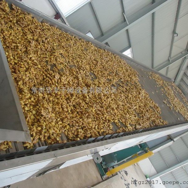 常州华丰干燥设备有限公司生产的姜片专用烘干机,胡萝卜丝烘干机,紫薯专用烘干机、脱水蔬菜烘干机、脱水蔬菜干燥机是成批生产用的自动化连续式干燥设备,主要有带式输送机,漂烫机,蔬菜清洗机,自动上料机,干燥主机。燃煤热风炉,传动,控制系统等组成。具有自动进料,自动出料,自动控制的功能,热能用量少,生产效率高,操作简单,维修方便,适用范围广。可自动调温,自动调速,可适用于青梗菜、卷心菜、胡萝卜、黄瓜、南瓜、木薯片、青刀豆、蒜苗、中药材片、山药、枸杞、姜片、大葱、竹笋、芋籽等根茎、茎杆、茎叶类、果品类、槟榔、大枣、葡萄、枸杞、苹果片、猕猴桃片物料等多种蔬菜,药材,苹果类的脱水干燥,是目前脱水蔬菜行业自动化程度较高的干燥设备。对温度不允许高的物料尤为合适;改系列干燥机具有干燥速度快。蒸发强度高。产品质量高的特点。