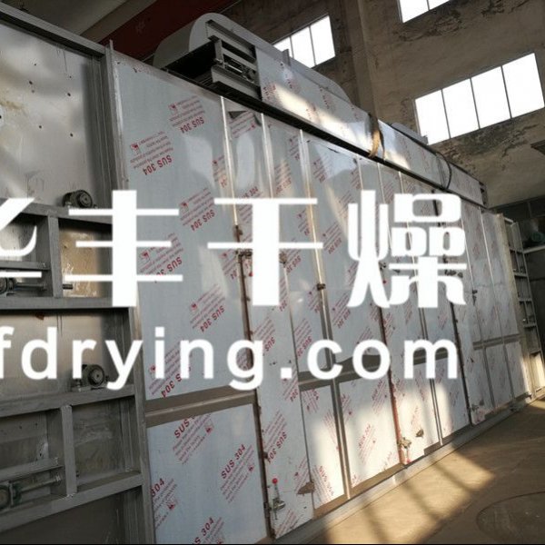 将刺梨均匀的平铺在网带上,网带采用12-60目的钢丝网带,由传动装置拖动在干燥机内往返移动,热风在物料间穿流而过,水蒸气从顶部排出,从而达到干燥的目的,箱体长度由标准段组合而成,为了节约场地,可将烘干机制成多层式,二层至6层根据用户需求定制。载热体由风机引入到烘干机内部,引风机产生的风速、风压使载热体充分、均匀的散布在烘干机底部,由于下部压力大于上面压力,载热体向上运动,穿过每层网带,使刺梨与载热体充分接触,提高烘干效率。