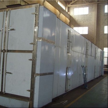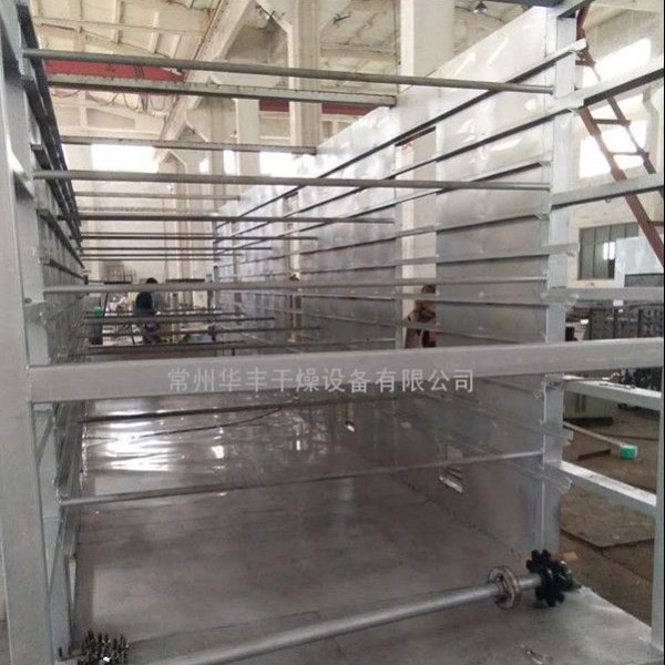 排湿阀调节有影响温度及干燥速度二方面的作用。排湿阀连杆处于垂直状态为全开,处于水平状态为全关。在排湿管路现场安装时应检查排湿调节阀的工作状态并紧螺母,以免误操作。排湿阀全开时排出风量多,温度下跃,由于排出风量多,新鲜空气补充量也就多,干燥气体的相对温度下降,有利于提高干燥速度,为了弥补温度下跃,蒸汽进汽阀开度适当增大,这样就增加蒸汽用量,合理地调节排湿量对提高产品质量、产量及降低能耗有一定作用,茯苓片带式干燥机,一般情况下,物料含湿量高时,带式干燥机,排湿阀全开,以利于提高干燥旨度;物料含湿量低时,适当减少排湿量,以利于形成一定的干燥气份并节约能源。