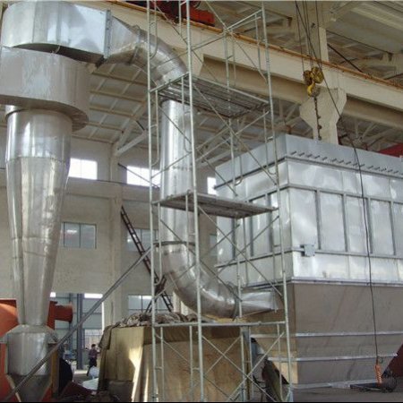 2.干燥气体进入干燥机底部,产生强烈的旋转气流,对器壁上物料产生强烈的冲刷带出作用,消除粘壁现象。在干燥机低部高温区,热敏性物料不与热表面直接接触,并装有特殊装置,解决了热敏性物料的焦化变色问题。