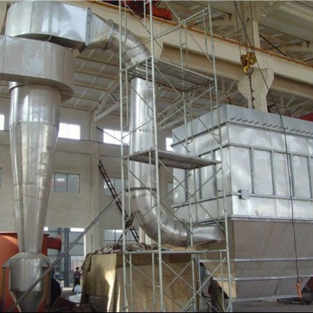 2.干燥气体进入干燥机底部,产生强烈的旋转气流,对器壁上物料产生强烈的冲刷带出作用,消除粘壁现象。在干燥机低部高温区,热敏性物料不与热表面直接接触,并装有特殊装置,解决了热敏性物料的焦化变色问题。