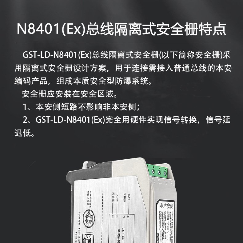 海湾GST-LD-N8401(Ex)总线隔离式安全栅 安装 接线 GST-LD-N8401(Ex)总线隔离式安全栅(以下简称安全栅)采用隔离式安全栅设计