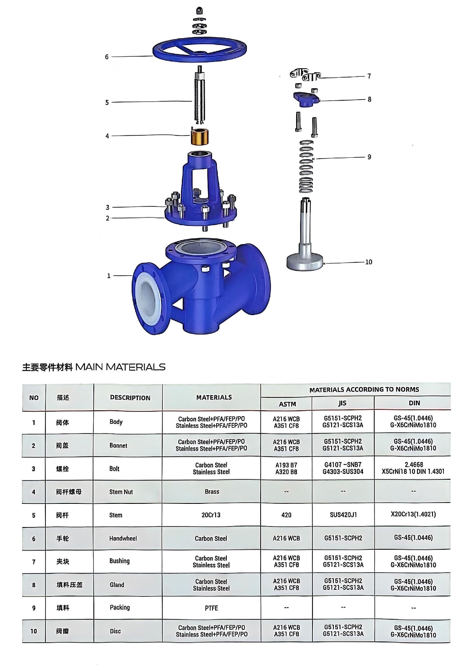鸿丰衬氟截止阀J41PFA/F46/PO