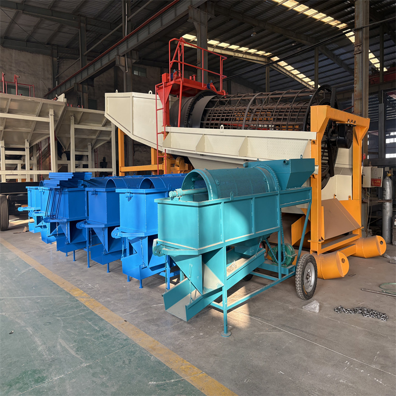 原料(含金泥砂)从进料口进入滚筒,在翻滚过程中,细小颗粒穿过筛孔进入后续选金系统(如