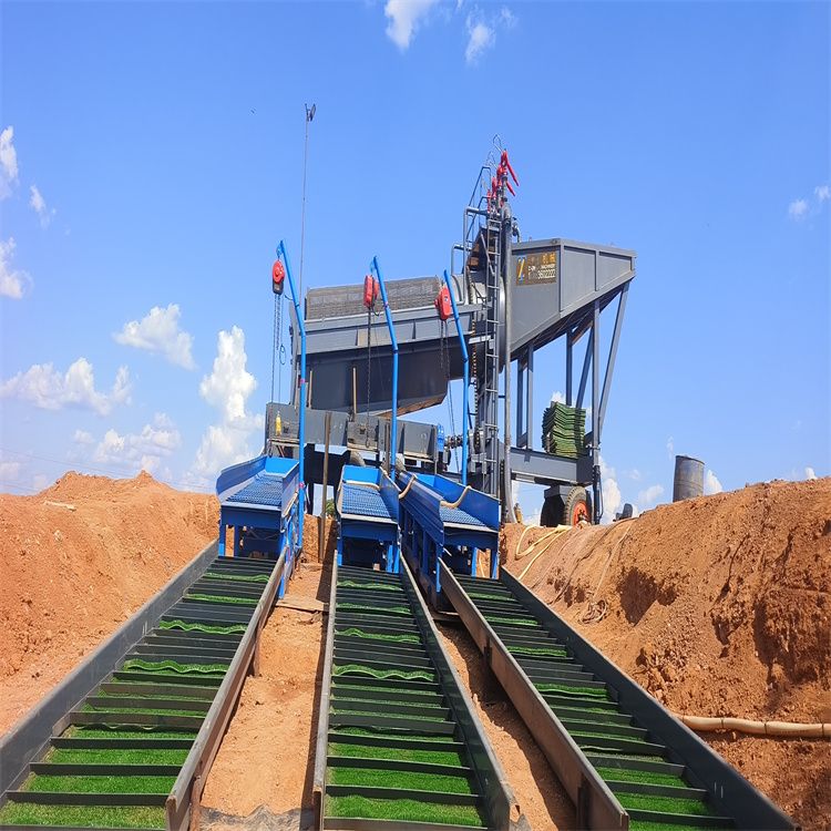溜槽:经典配置,铺设金毡或矿化毯,利用重力捕金。