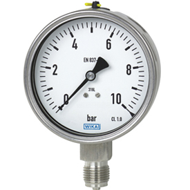 CrNi-不锈钢,带有安全隔爆层(坚固的前面)和安全卸压后盖,当压力范围≤0…16bar时(压力接口径向底部)为内部压力平衡通气和再密闭用