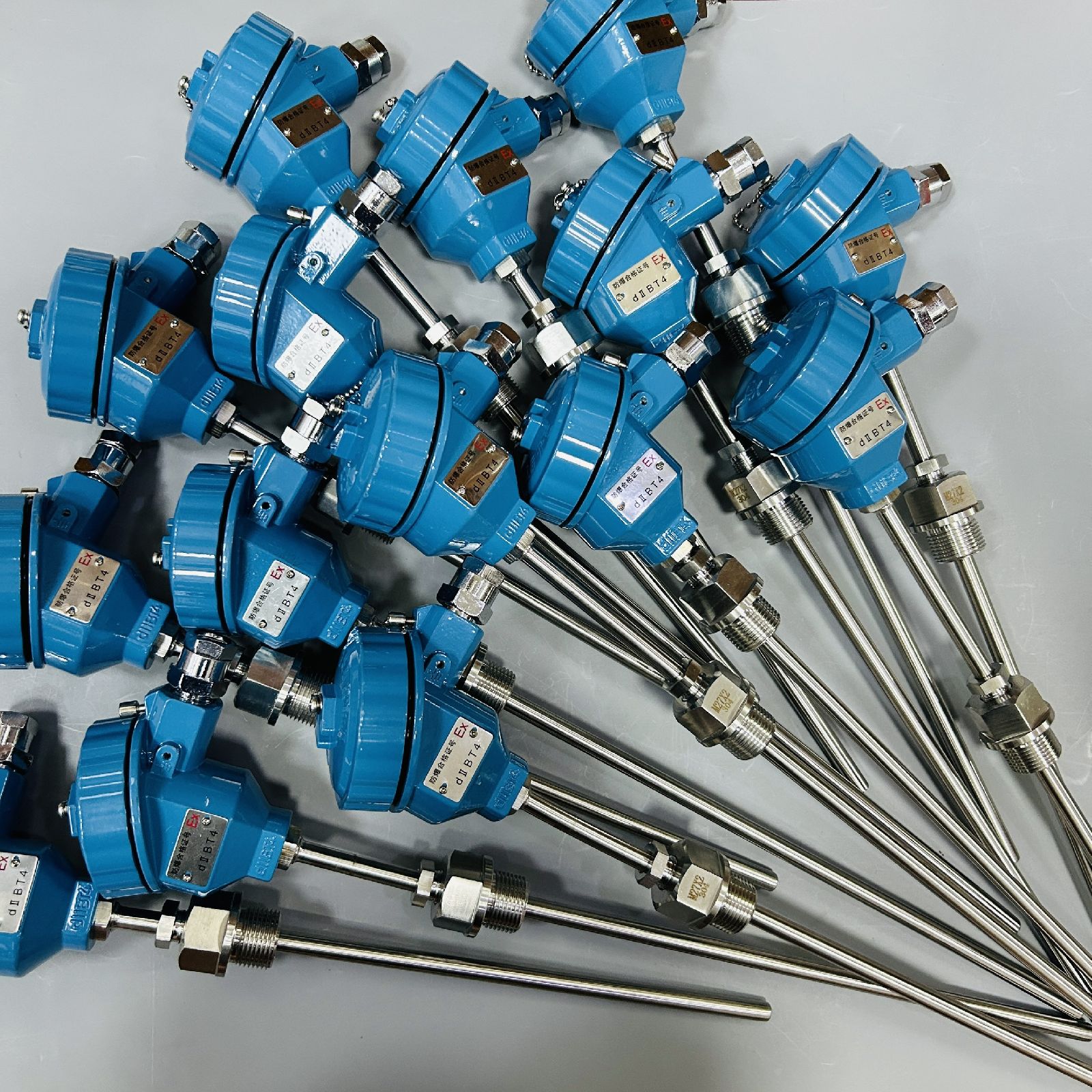 在化工厂、生产现场常伴有各种易燃、易爆等化学气体、蒸气,如果使用普通的铂电阻非常不安全,极易引起环境气体爆炸。因此,在这些场合必须使用隔爆热电偶作温度传感器,本厂生产的隔爆铂电阻产品适用在dIIBT4~dIICT6温度组别区间内具有爆炸性气体危险的场所内.