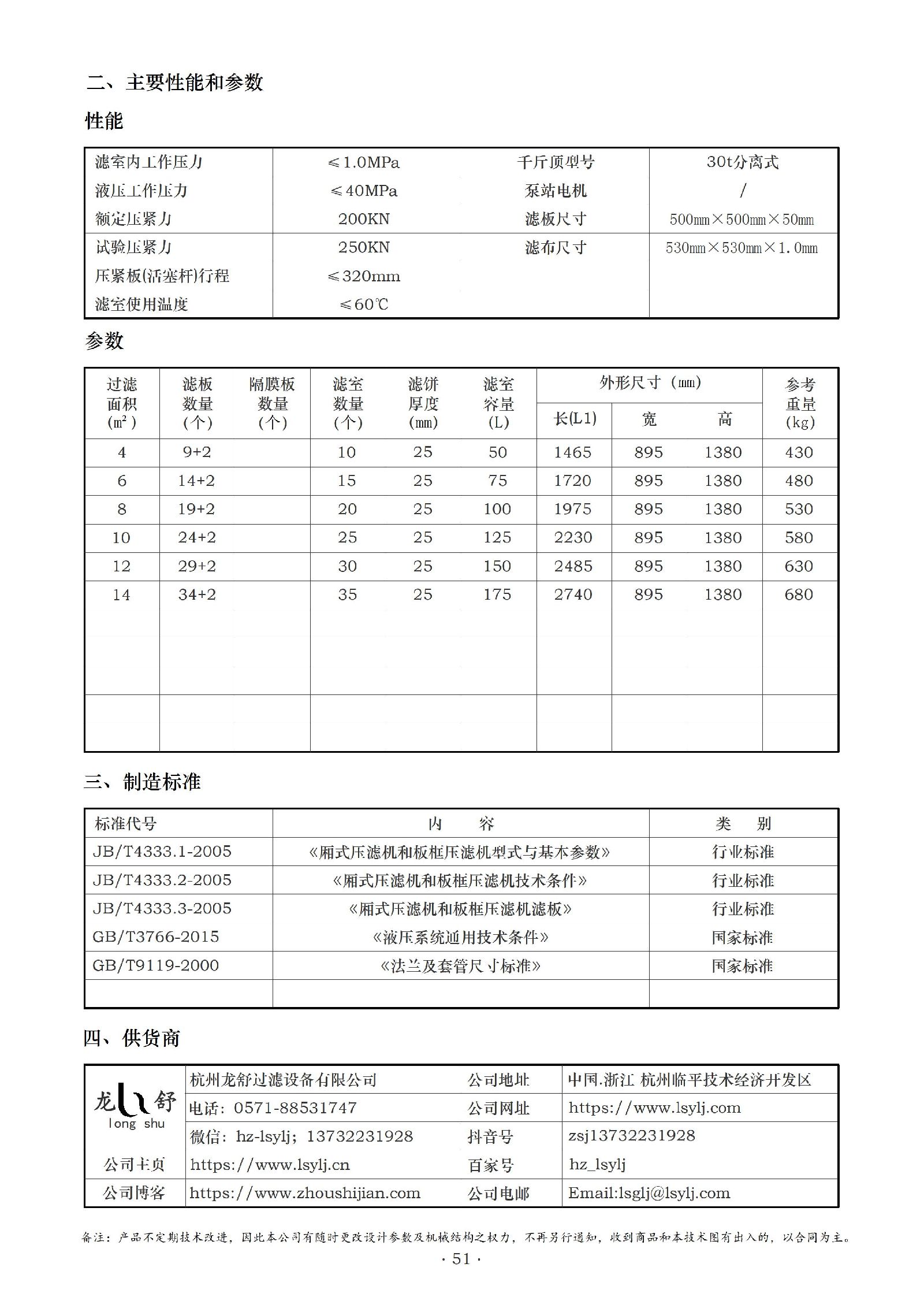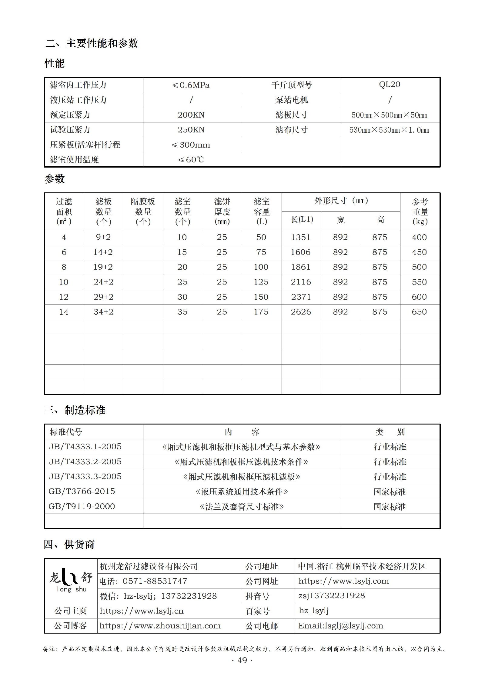滤室容量:随着过滤面积从4平方米到14平方米变化,滤室容量从50L到175L不等。