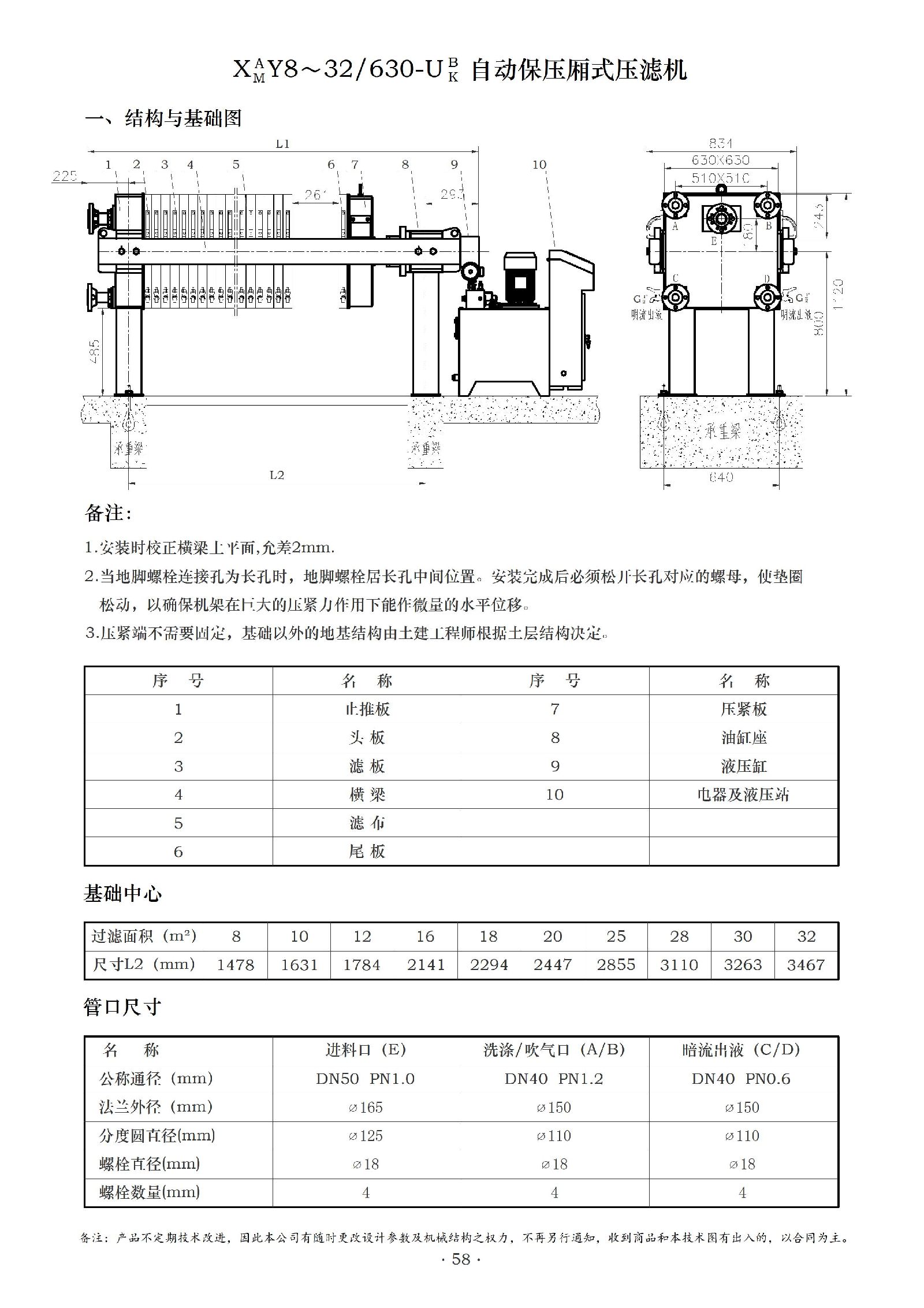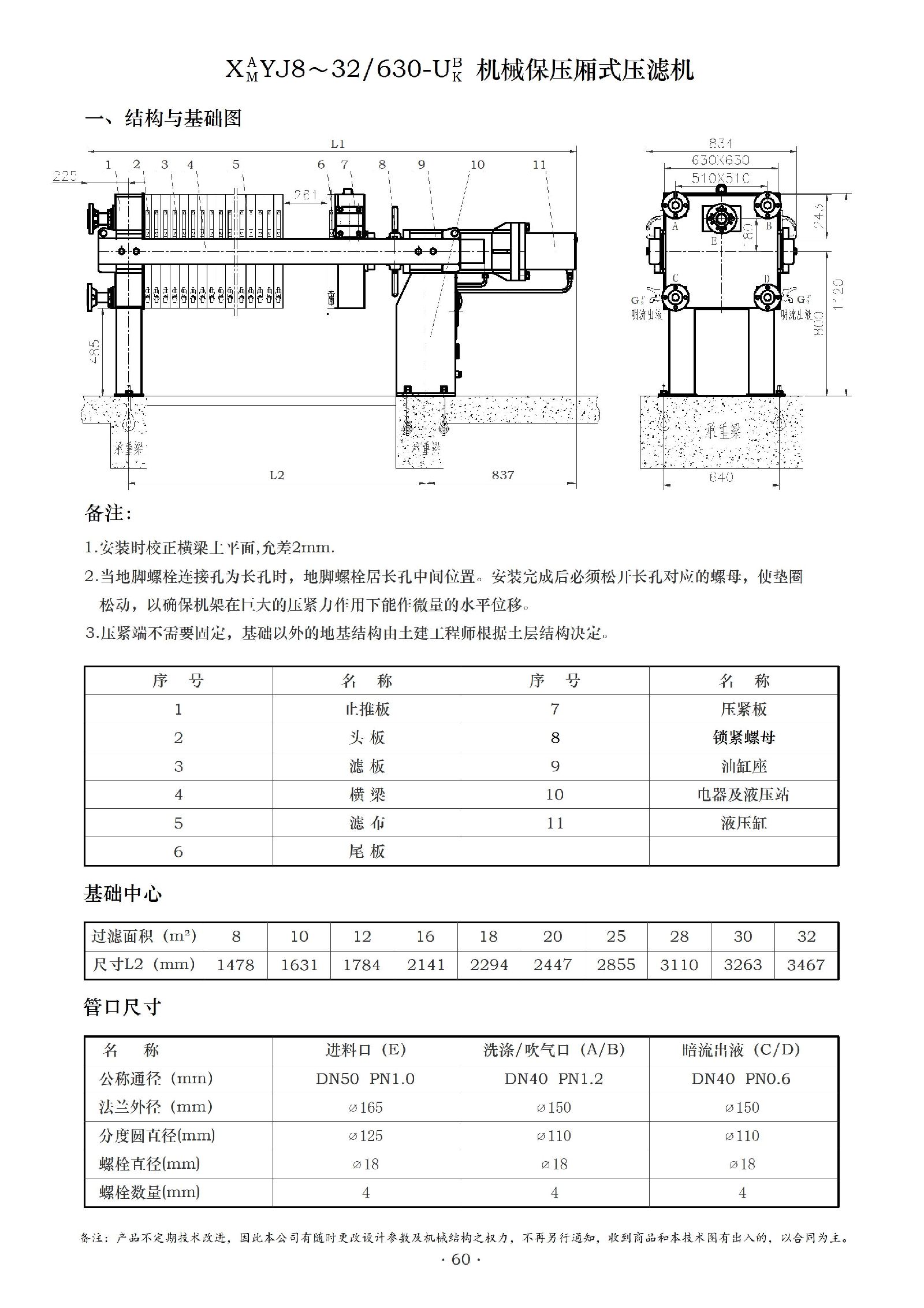 以下是XY(J)8~32/ 630-U系列液压厢式压滤机的相关介绍: