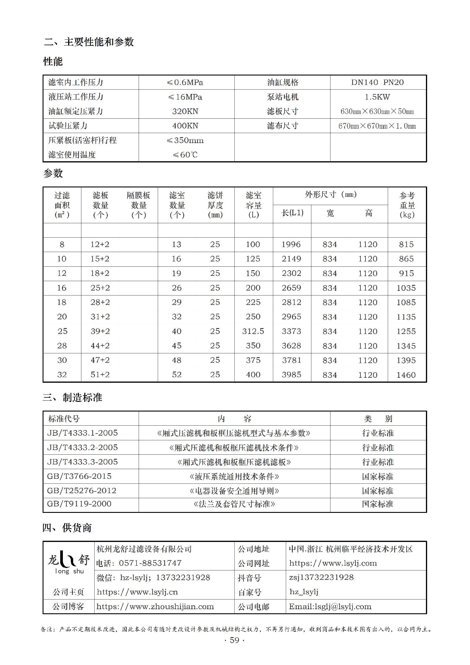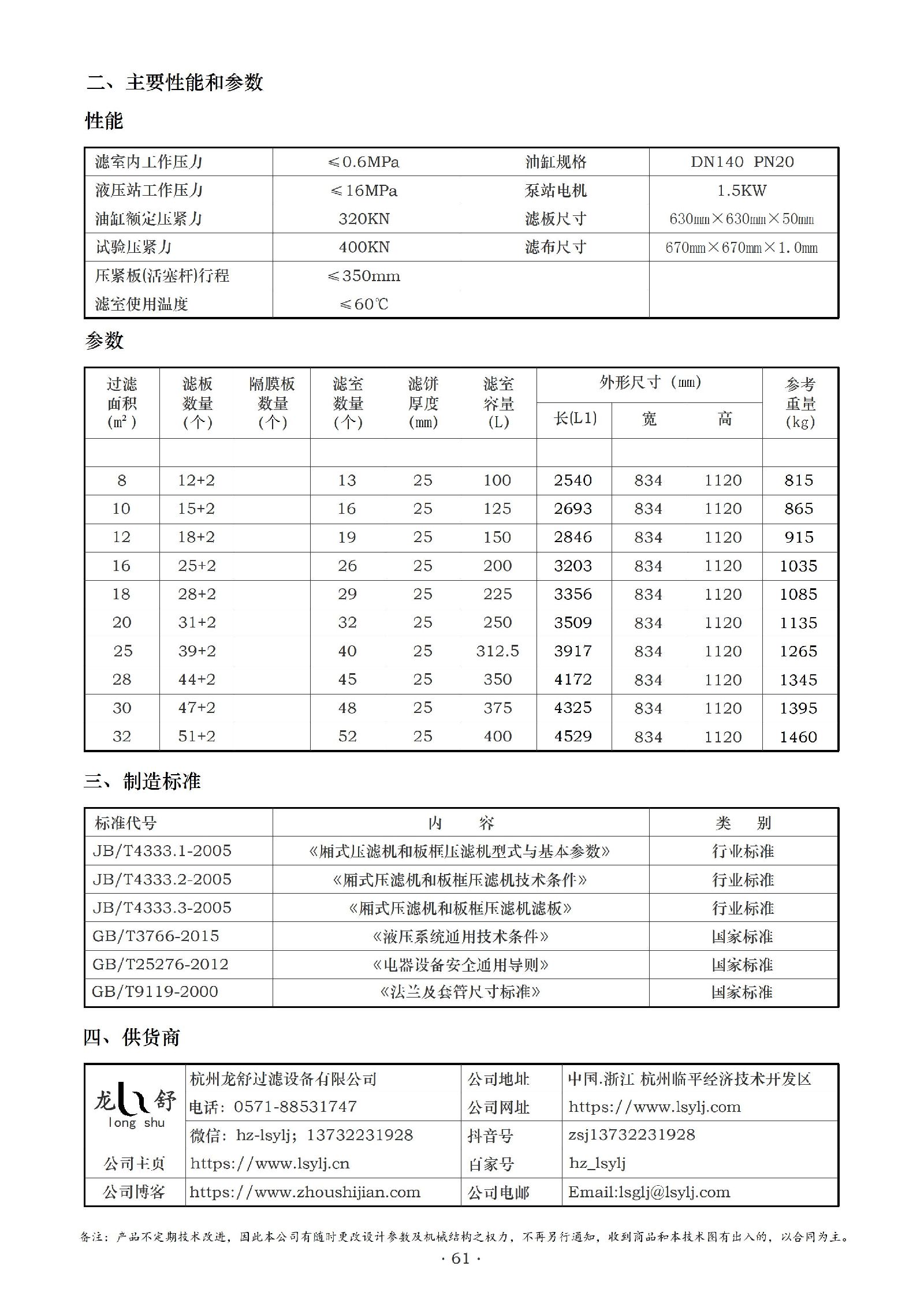 过滤压力:一般≤1.0MPa。液压工作压力:通常为 15MPa。压紧力:可达 320KN。